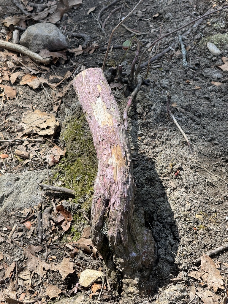 A little later, I came across a log with a strange pink color. I'm not sure what caused it, but it was pretty cool.